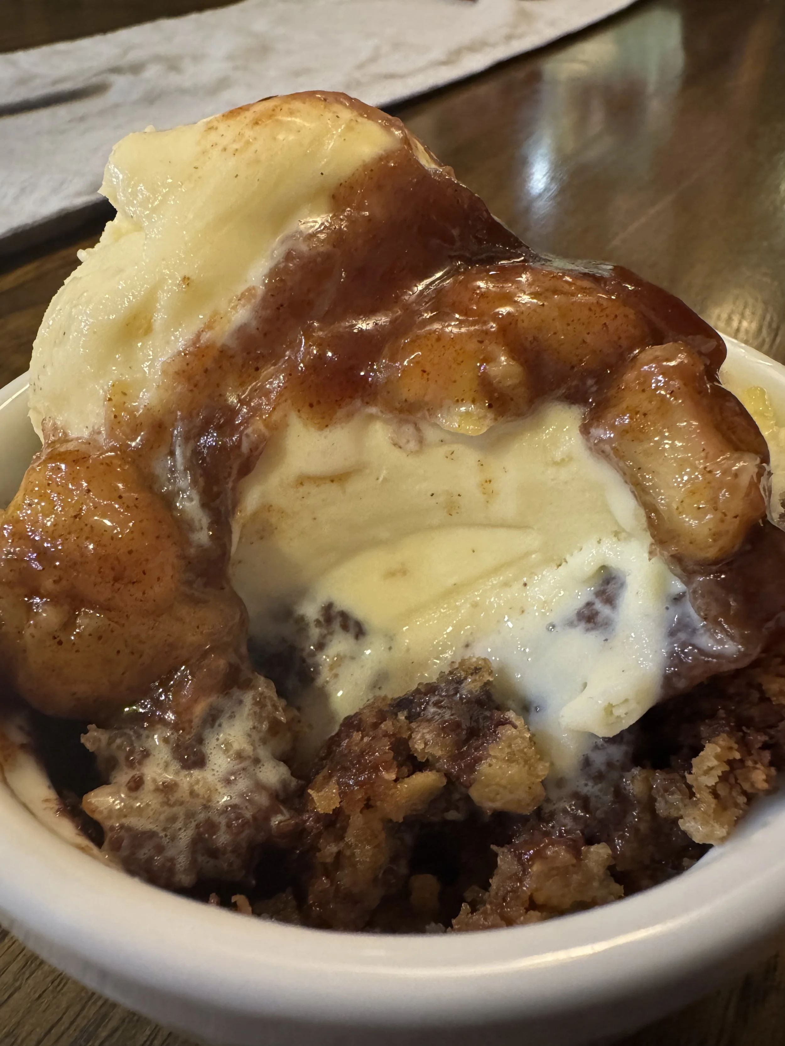 We’re talking browned butter, gooey chocolate chips, and—the absolute crown jewel—caramelized cinnamon bananas on top.